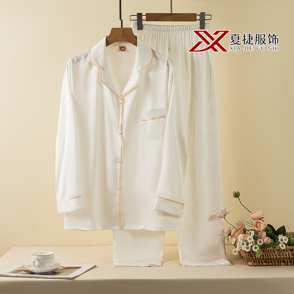 Наш белы жакардавы атласны піжамны камплект з залатымі кантамі спалучае вечную элегантнасць з раскошным камфортам, ствараючы вытанчанае дадатак да вашай калекцыі вопраткі для адпачынку. Выраблены з шаўкавістага атласа прэміум-класа з тонкай жаккардавай тэкстурай, ён забяспечвае адчуванне лёгкасці і дыхання на скуры, у той час як далікатная залацістая кант надае чыстаму беламу аснову вытанчаны, паліраваны налёт.
